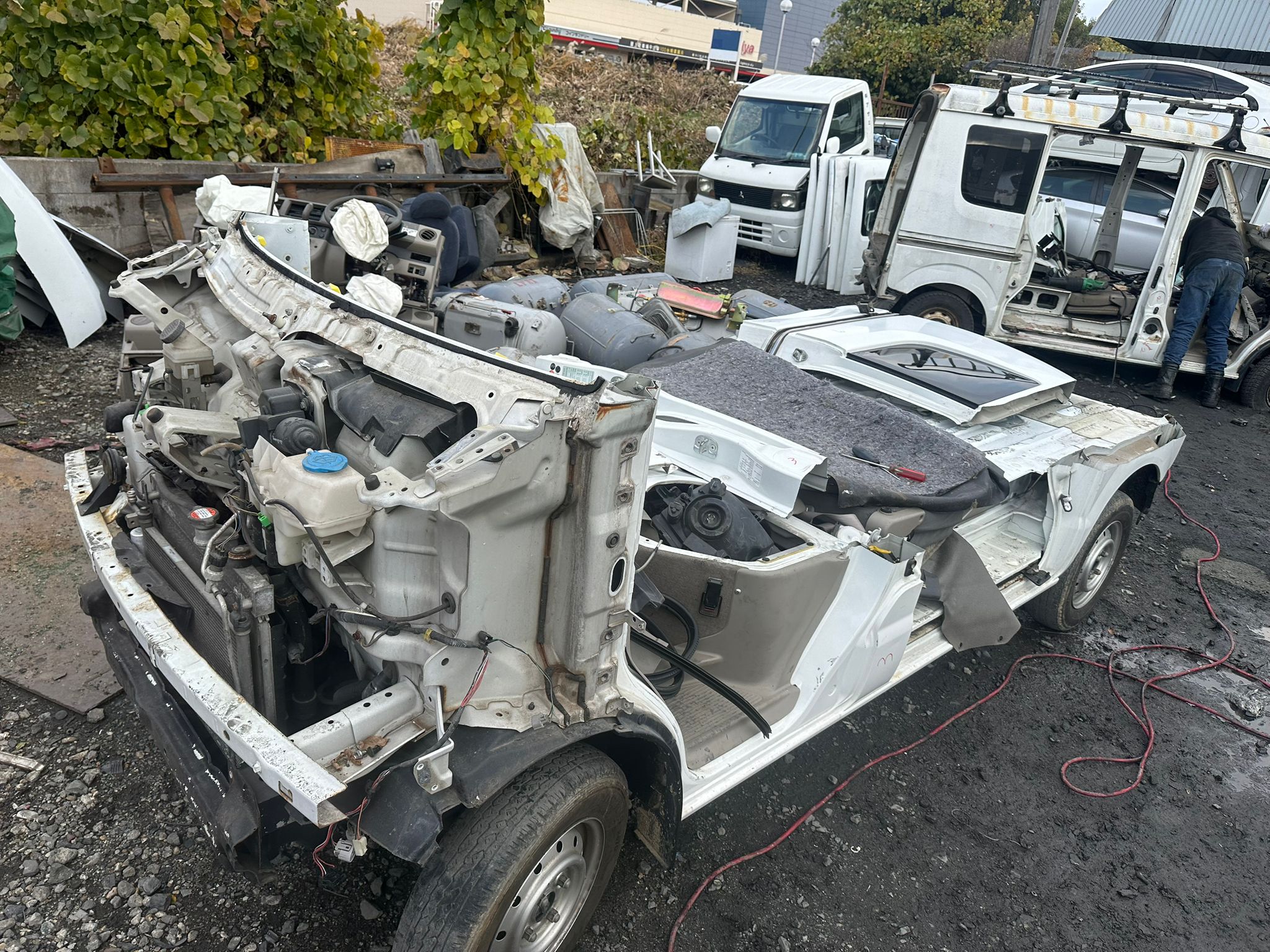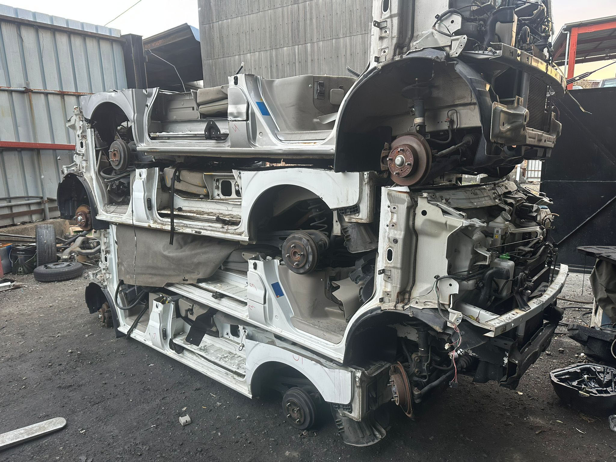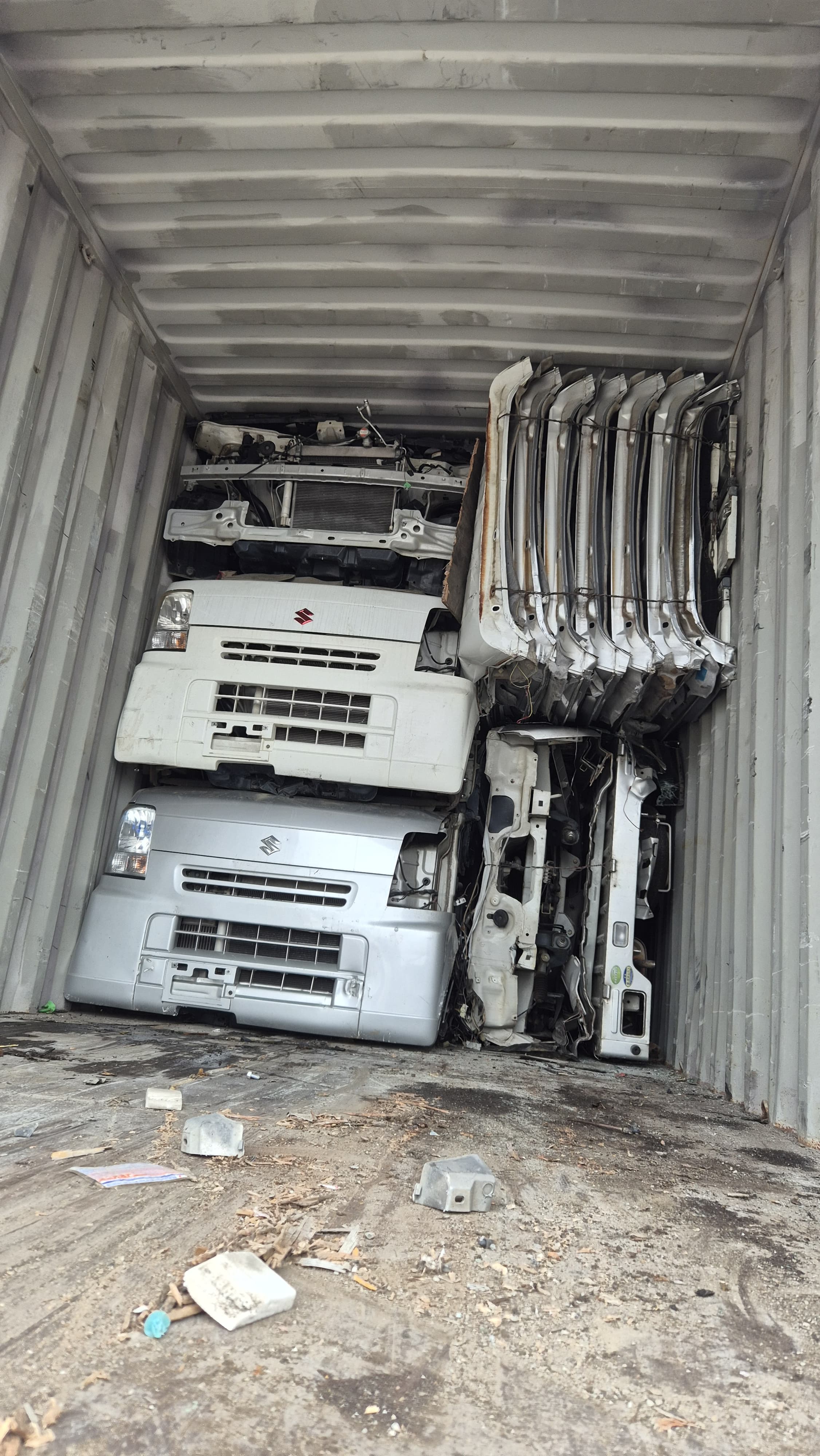 Roof section cut to maximize space. Main component integrity preserved. No random dismantling.