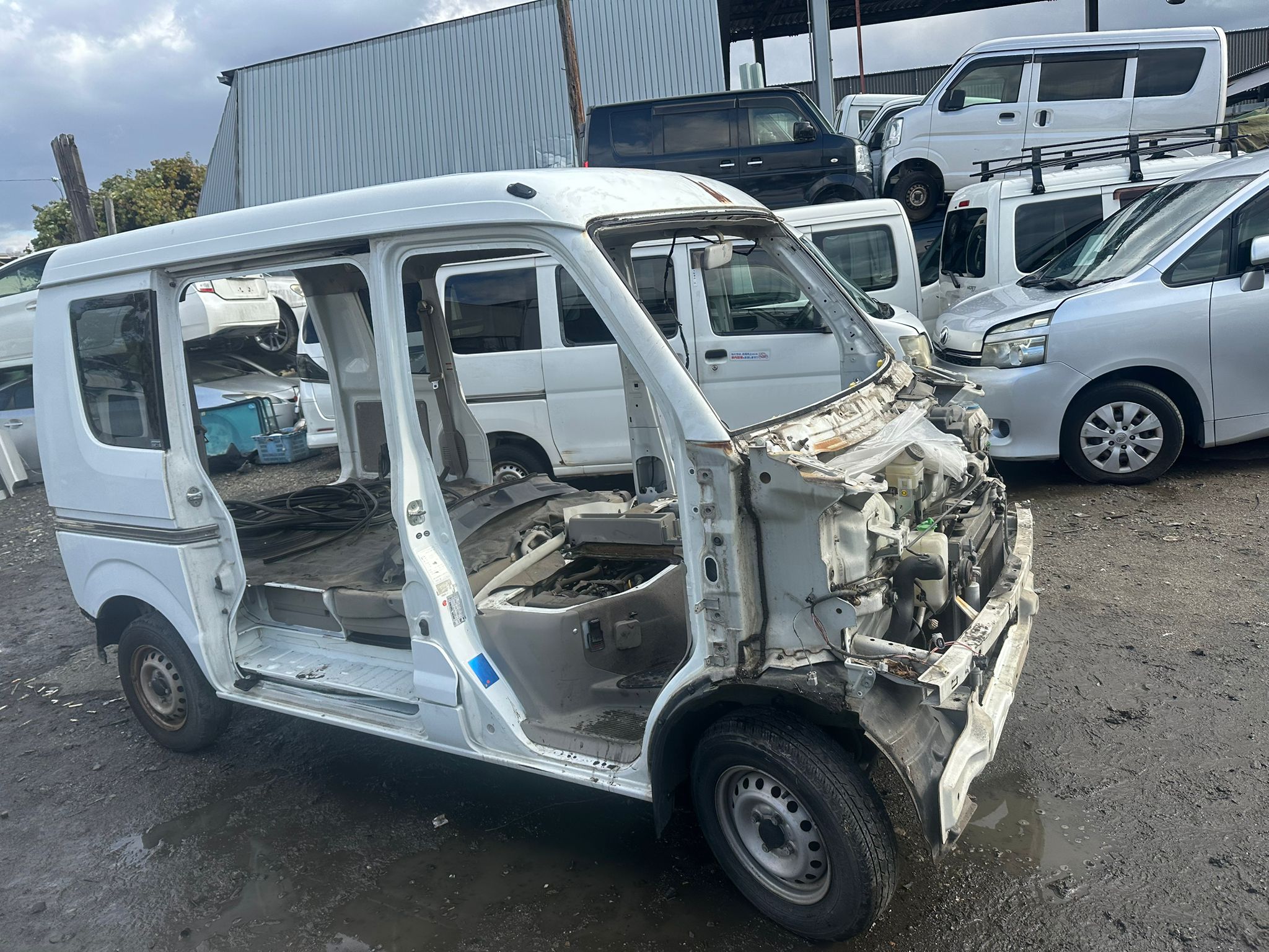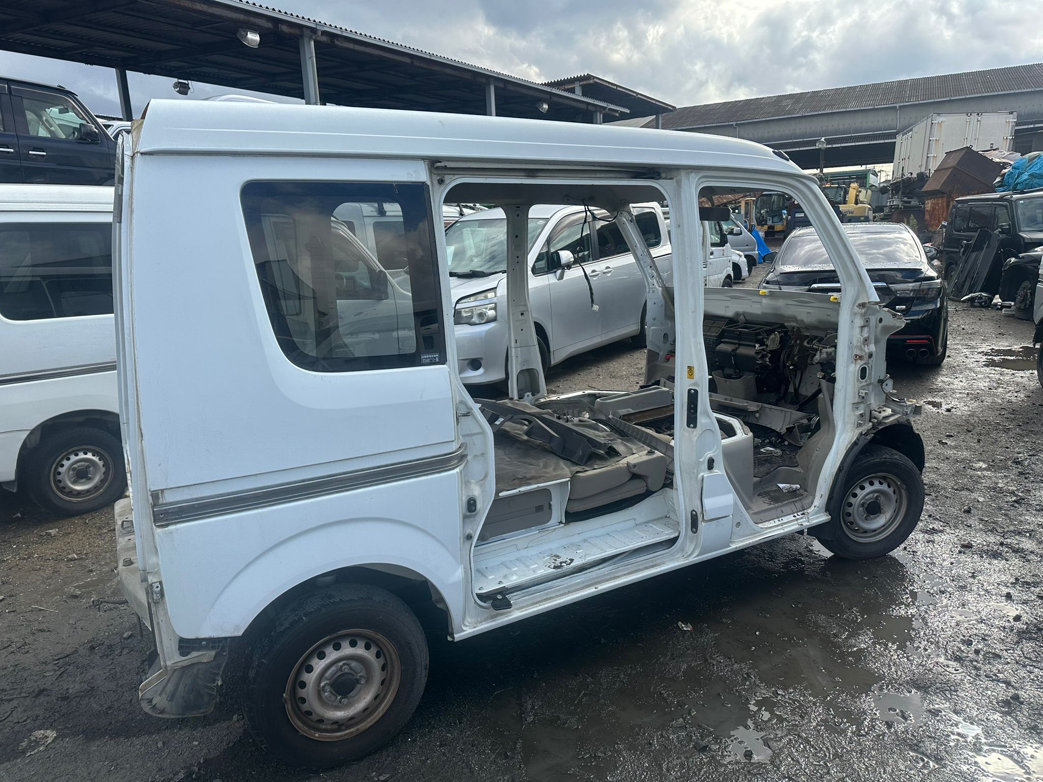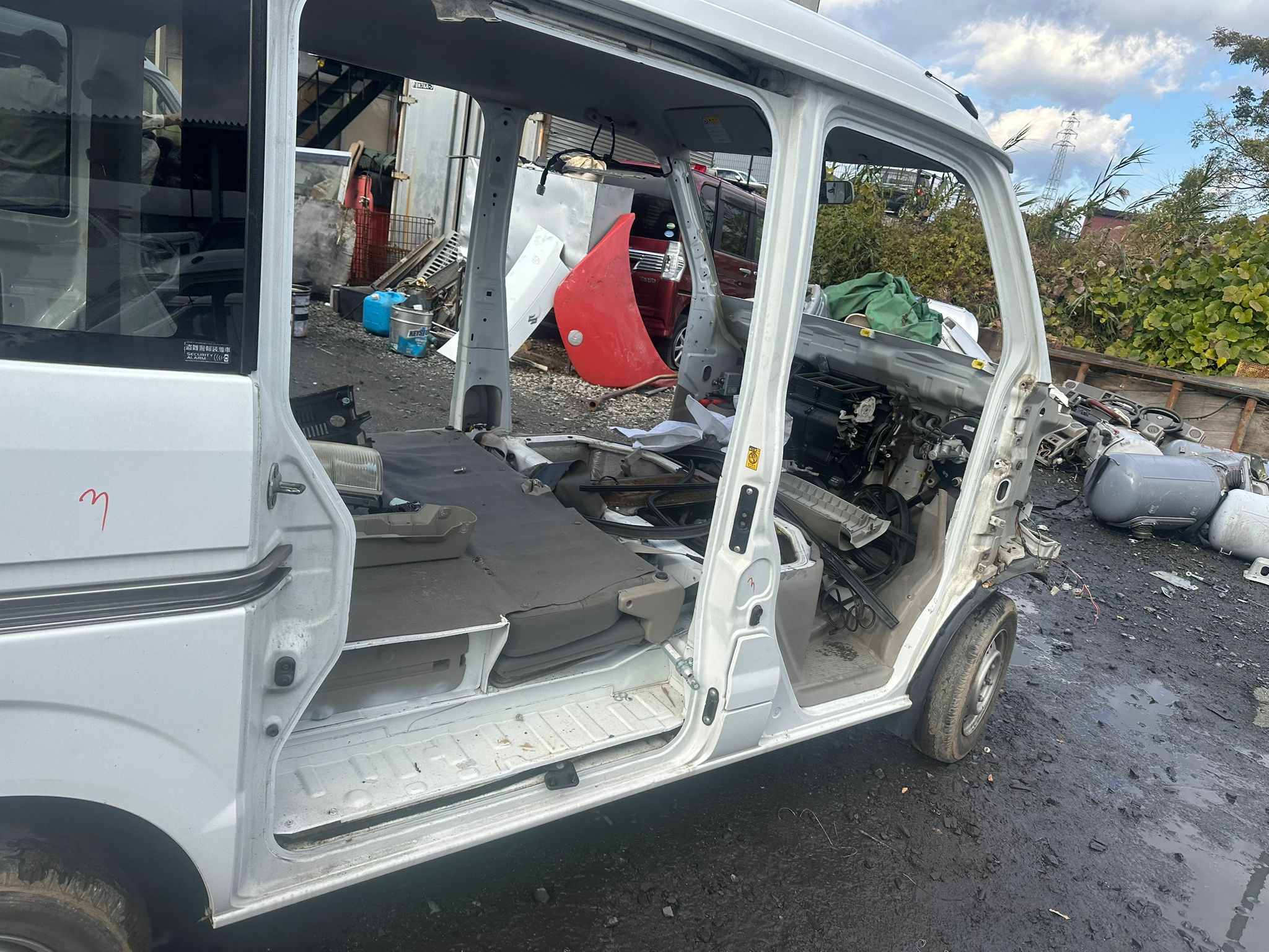 Roof section cut to maximize space. Main component integrity preserved. No random dismantling.